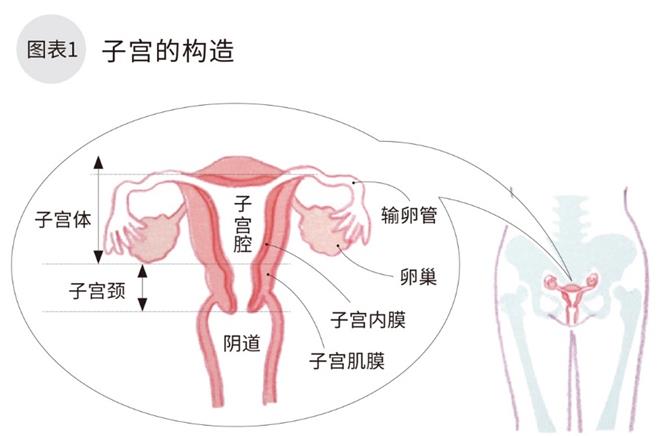 子宮主要由肌肉組成,分兩個(gè)部分,靠近子宮入口的宮頸部和深處的子宮體。非妊娠期的子宮大小約比雞蛋稍大一點(diǎn)。